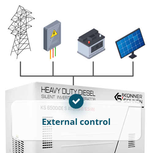 • External control – allows connection of external control devices for starting/stopping the generator and integration with automatic systems operating via dry contacts: solar inverters, UPS systems, and others.