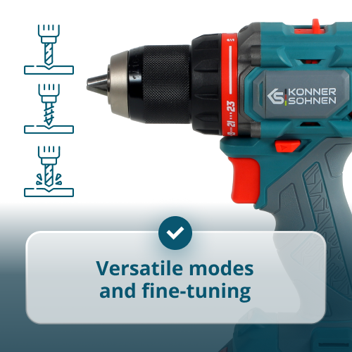 • Universal modes and precise adjustment – the tool features 23 torque positions, providing precise adjustment of fastening force for different materials and fastener types, and 3 operating modes — drilling, screwdriving, and impact drilling with an impact rate of up to 28500 bpm.