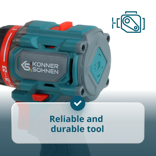 • Reliable and durable tool – the drill is equipped with a brushless motor that ensures long-lasting performance, stable power, and less heating during operation, while the reinforced metal gearbox housing protects the internal mechanisms from overload.