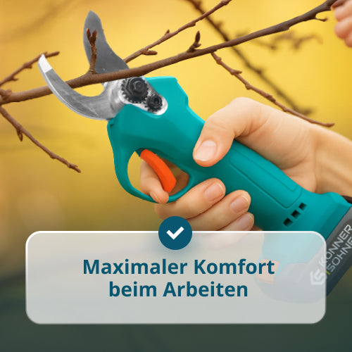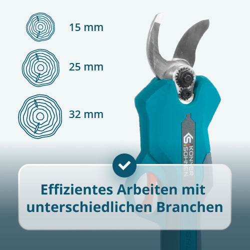 | Ausrüstung | Akkuschere, Steckschlüsselhülse, Schlüssel, Klingenschutz, Schleifstein, Ölflasche, 20V 2,4A Ladegerät, 20V 2Ah Lithium-Akku, Anleitung, Betriebsanleitung |