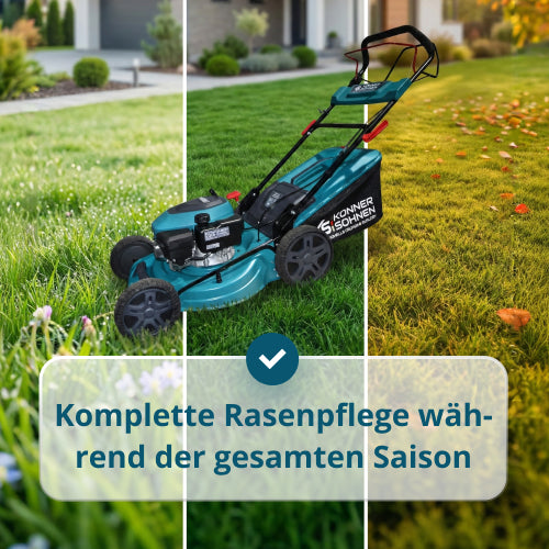 7 Funktionen in einem Gerät (Grasaufnahme, Mulchen, Seiten- oder Heckauswurf, Laubsammeln, Wasser-Selbstreinigung und Selbstantrieb) ermöglichen alle saisonalen Arbeiten ohne zusätzliche Geräte.