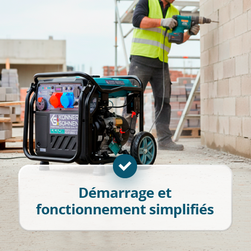 • Démarrage moteur simplifié 3-en-1 : intègre le robinet de carburant, le starter et le démarrage électrique pour une utilisation aisée.
