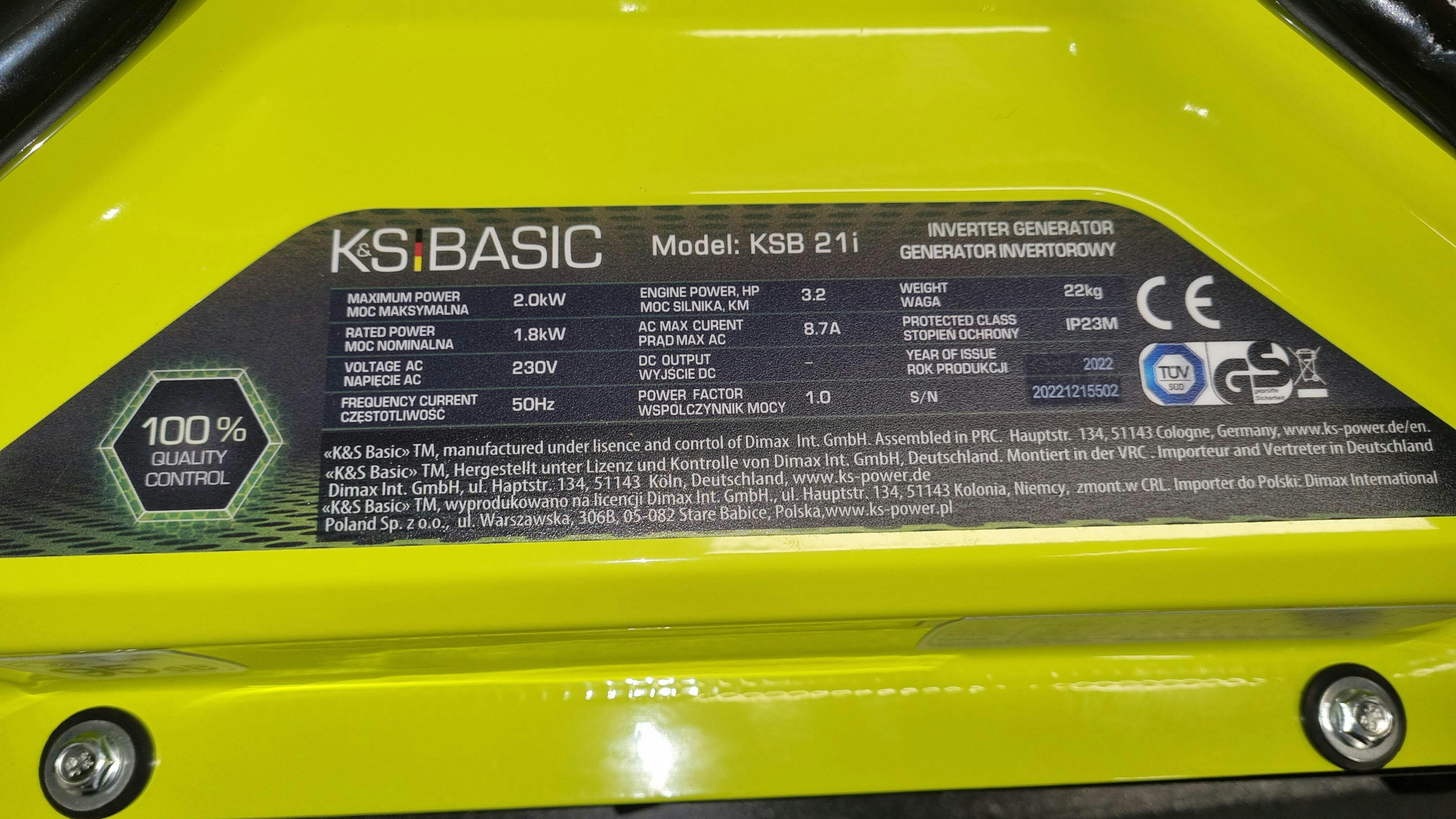 Inverteres generátor KSB 21i