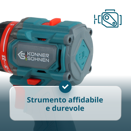 • Utensile affidabile e durevole – il trapano è dotato di un motore brushless che garantisce lunga durata, potenza stabile e minore riscaldamento durante l’uso, mentre il corpo rinforzato dell’ingranaggio con componenti metallici protegge i meccanismi interni dal sovraccarico.