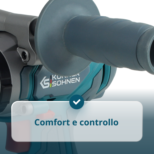 • Comfort e controllo – design ergonomico e compatto, impugnature in gomma, luce LED per la visibilità al buio, indicatore di carica della batteria e gancio per cintura per il massimo comfort in ogni condizione.
