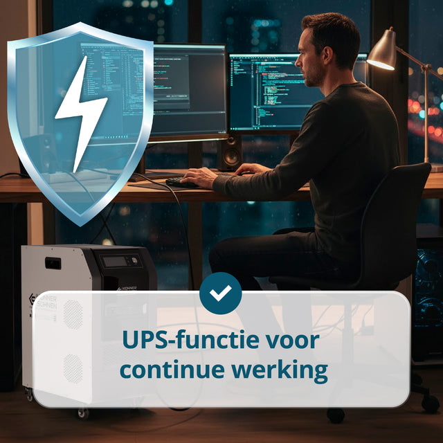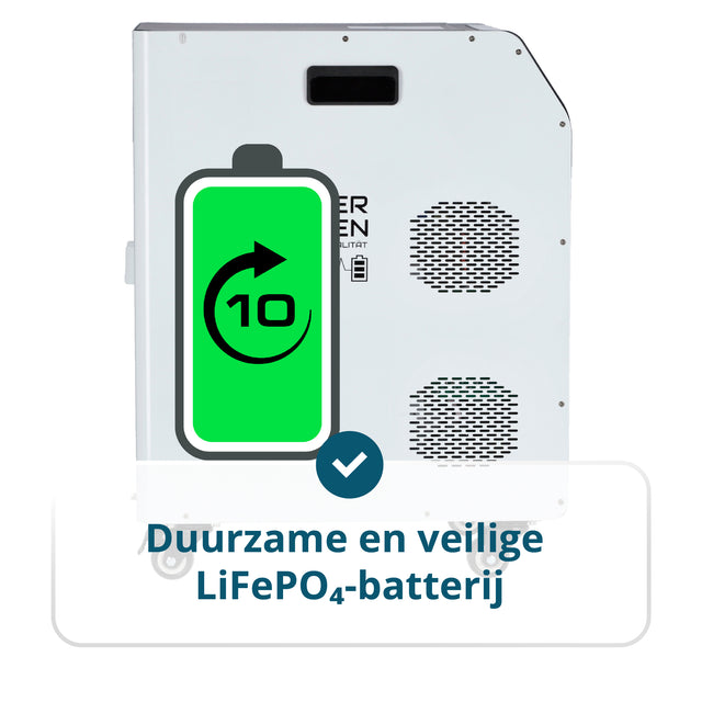 • Duurzame en veilige LiFePO₄-batterij – levensduur tot 6000 cycli en meer dan 10 jaar gebruik zorgen voor een betrouwbare investering in energieonafhankelijkheid.