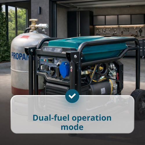 • Capacidade de combustível duplo (gasolina e gás) proporciona máxima flexibilidade, permitindo-lhe escolher o combustível mais acessível ou económico, reduzir os custos operacionais e manter o fornecimento de energia mesmo que um tipo de combustível seja limitado.