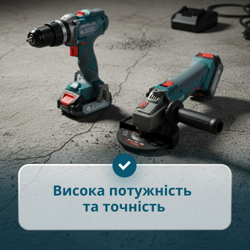 • Робота без перерв – наявність двох акумуляторів у наборі дозволяє один заряджати, поки працюєш з іншим.